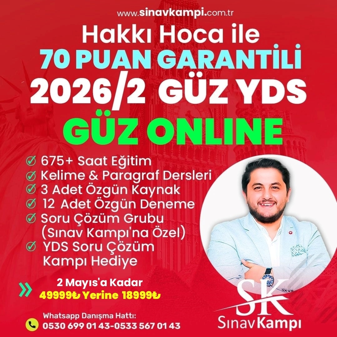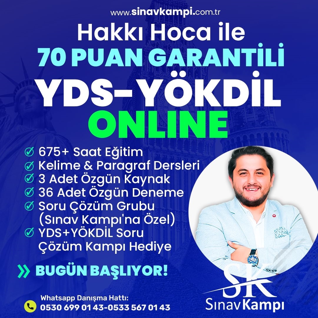 HAKKI HOCA İLE 70 PUAN GARANTİLİ ONLINE YDS-YÖKDİL KURSU